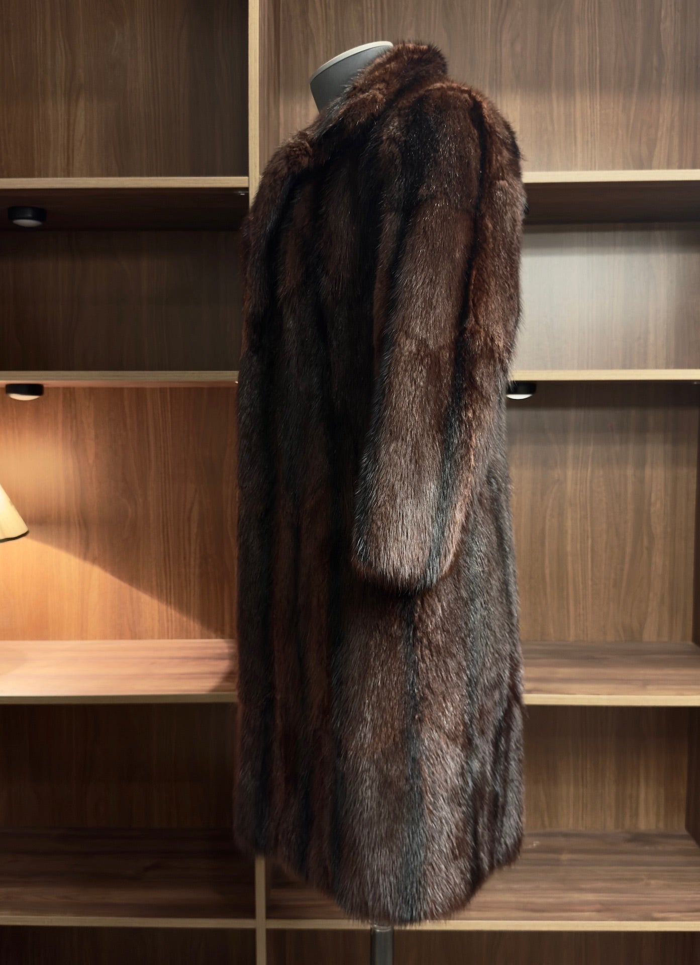 Dieser luxuriöse Mantel aus 100% echtem Muskrat (Sumpf-Biber) besticht durch sein warmes, naturbraunes Fell mit markanten schwarzen Streifen, die dem Stück eine außergewöhnliche Tiefe und Lebendigkeit verleihen. Die dichte, robuste Fellstruktur sorgt für hervorragende Wärme, während die geschmeidige Oberfläche und der klassische Schnitt die hochwertige Vintage-Qualität unterstreichen. Durch seine natürliche Fülle und die leicht großzügigere Passform entsteht eine elegante, weiche Silhouette – ein zeitloses Statementstück für Liebhaberinnen authentischer Naturfelle.