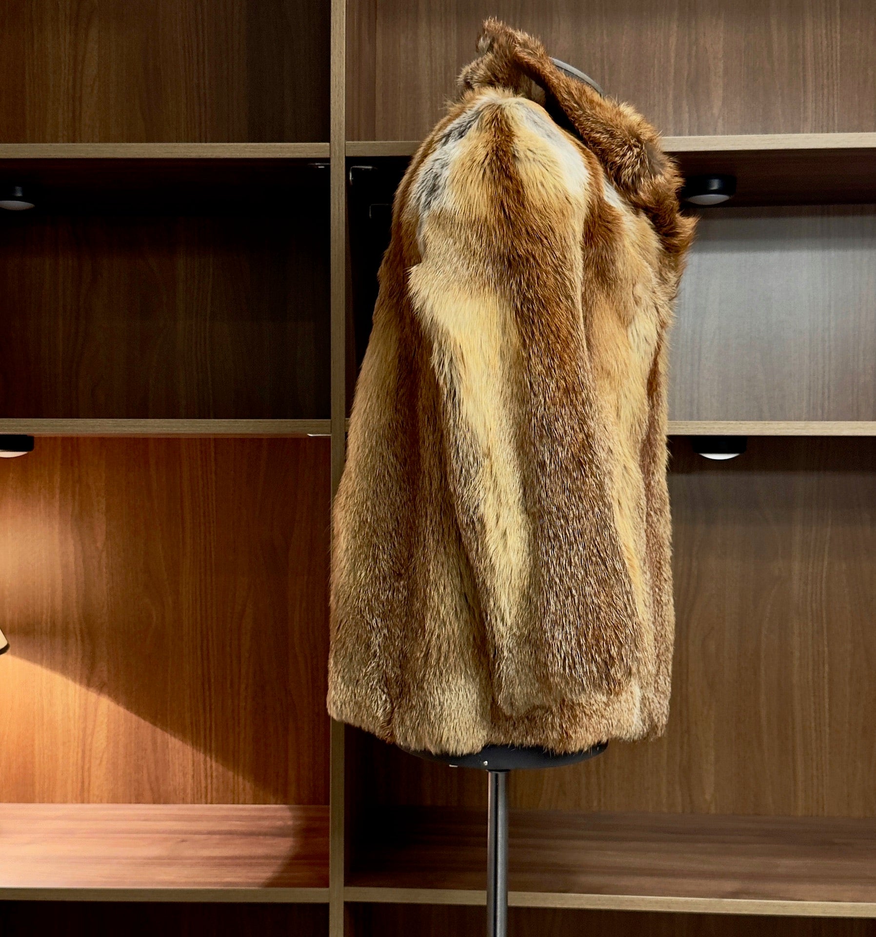 Diese exquisite Rotfuchsjacke präsentiert sich in warmen, natürlichen Rottönen und verbindet luxuriöse Fülle mit klassischer Vintage-Ästhetik. Die dichte, voluminöse Struktur des Fells verleiht ihr eine beeindruckende Wärmeleistung und eine lebendige, natürliche Farbintensität. Durch die kürzere, modische Länge entsteht ein eleganter, leicht kompakter Look, der sowohl edel als auch vielseitig kombinierbar ist – ein zeitloses Statement echter Pelzhandwerkskunst.